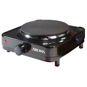 Give your kitchen some added flexibility with this electric range from Aroma - perfect when you're entertaining large groups, compact when you're making lunch at the office and durable when you're camping at the beach. Can be used for cooking and serving. Choose from four different temperature settings, and enjoy the convenience of the easy-to-clean surface and stylish black finish. Made from die-cast metal for extra durability, it's the perfect addition to your home, office, dorm or even camper!